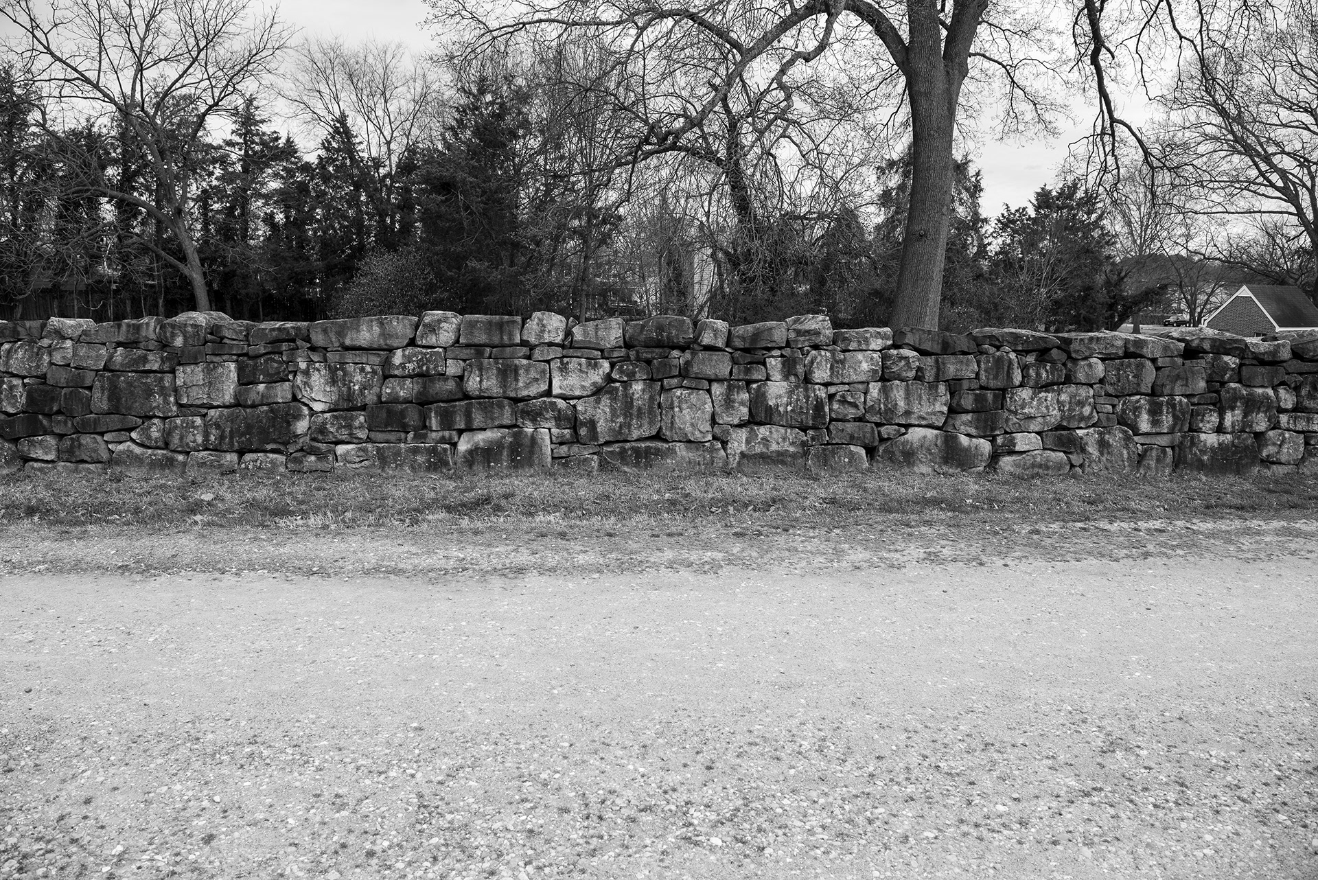 From the Sunken Road looking towards Willis Street. Fredericksburg and Spotsylvania National Military Park, Fredericksburg, VA. March 2020