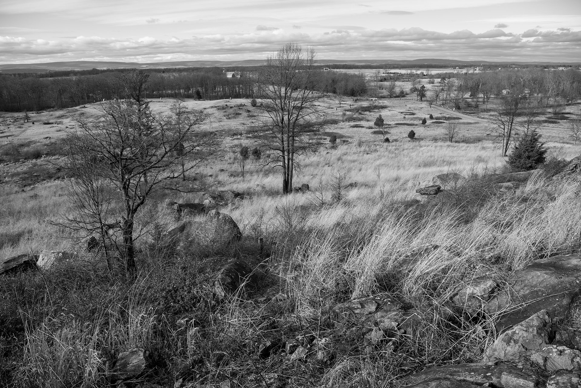 View Looking West From Little Round Top, Sykes Ave. Gettysburg National Military Park. Gettysburg, PA. January 2020