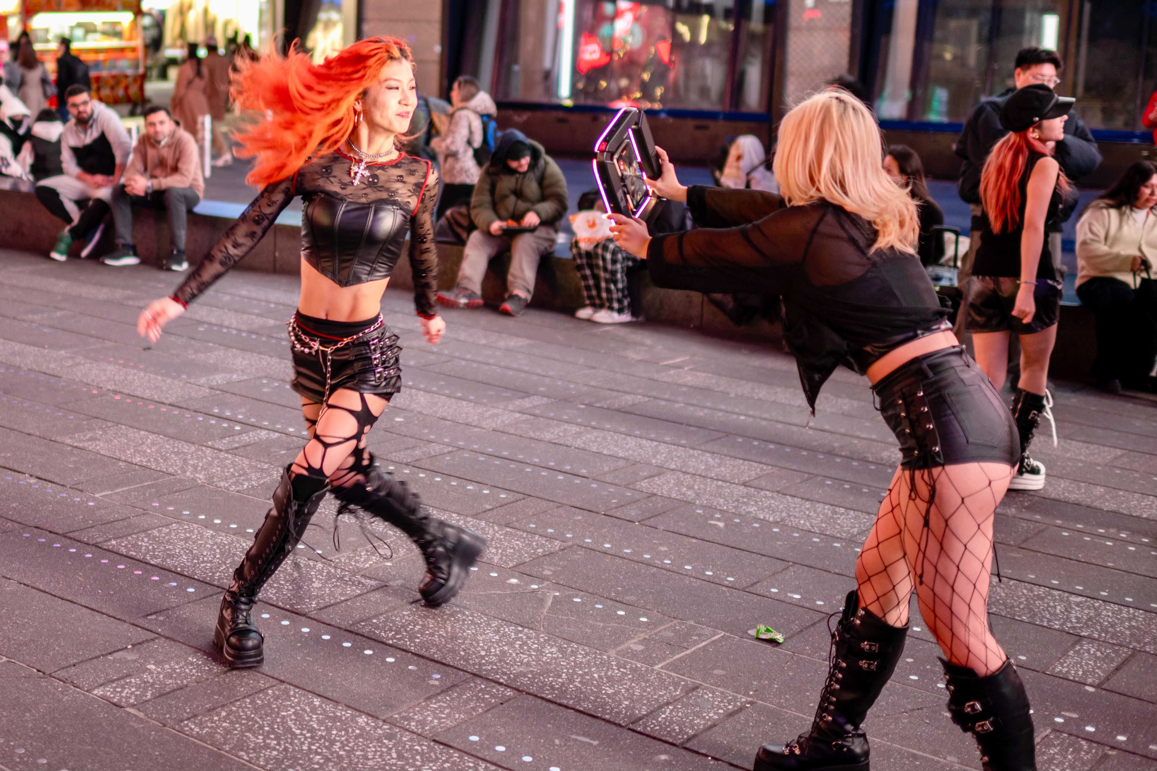 TikToking on Times Square, Manhattan, New York, New York, 03/2025